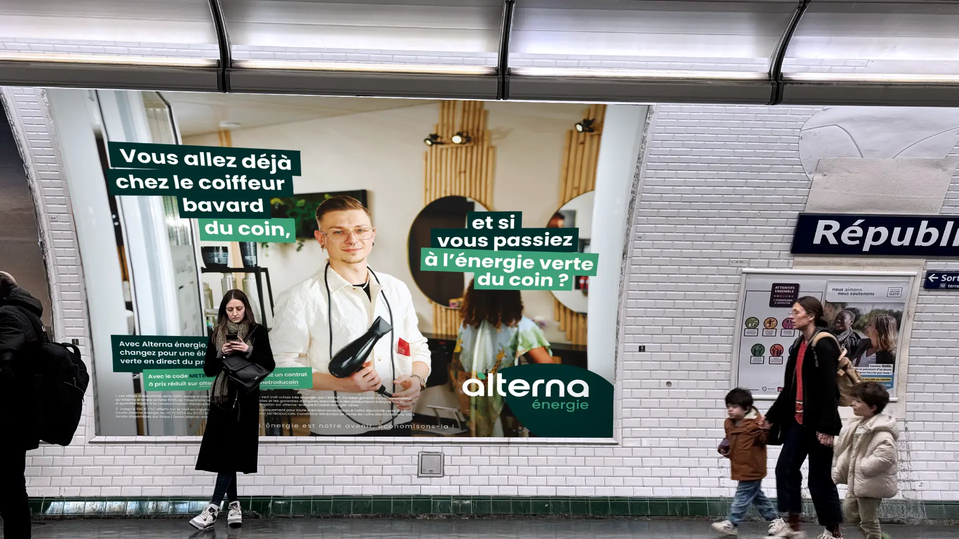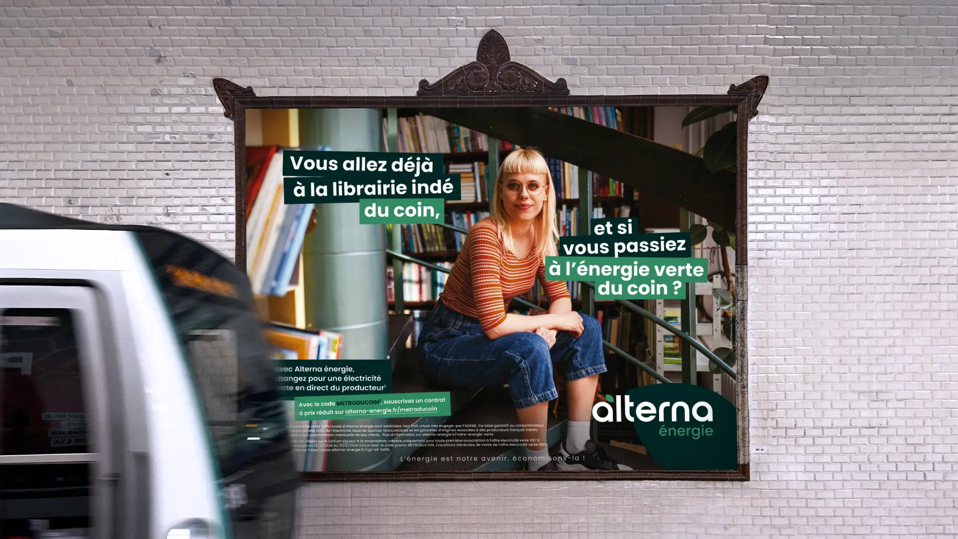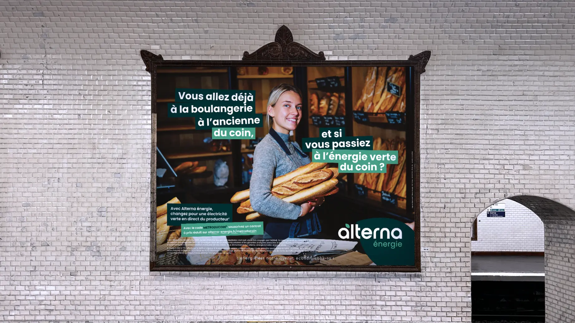Pour faire connaître Alterna énergie auprès du grand public et recruter de nouveaux clients particuliers, nous avons voulu différencier la marque sur le marché de l’énergie et de l’énergie verte en particulier. Comment ? Par sa dimension locale qui fait écho à la démarche circuit court que beaucoup de Français ont déjà intégrée dans leur consommation quotidienne. Nous rendons ainsi la valeur ajoutée d'Alterna énergie facilement compréhensible sur le marché et mettons les Français face à leurs contradictions : si vous achetez déjà votre pain au boulanger du coin et vos tomates au producteur du coin, qu'attendez-vous pour passer à l'énergie du coin ? Alterna énergie, c'est l'énergie du coin qu'on valorise au même titre que n’importe quel commerce de proximité.